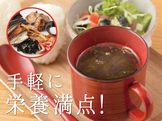 あわただしい朝も、わじまのスープだしにお湯を注ぐだけで、美味しいスープをいただけます。滋味深いこのスープを飲むと、心も身体も「ホッ!」とします。